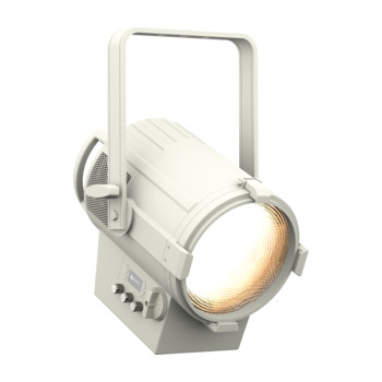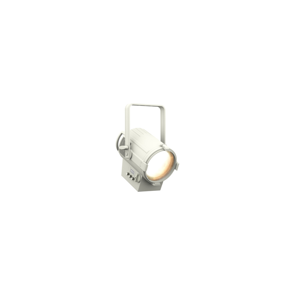 Proyector Fresnel Blanco con fuente Led de 250W con Temperatura de Color Variable con intensidad equiparable a los Fresnel de 1.000W convencionales. Luz blanca Blanca Variable de altísima precisión cromática, CRI >95 @CW R9 >81, TLCI: 98 TM30 RF: 93 RG: 104. Temperatura de color variable desde 2.700°K a 5.600°K. Diseñado para cubrir las necesidades lumínicas de un Fresnel convencional de 1KW con lente de Ø200mm, con las ventajas de la fuente Led y su capacidad de proyectar luz blanca de cualquier temperatura de color disponible con niveles cromáticos de la mayor calidad. Zoom manual de 17° a 64° operado por Mando giratorio en el lateral. Dimmer y Shutter con macros pregrabadas con velocidad ajustable. Flicker Free con frecuencias PWM seleccionables desde 600Hz a 25kHz. Canal dedicado para el control de la TC desde 2.700°K a 5.600°K. Función Ámbar Shift, que lo hace ideal para Broadcast, Eventos corporativos y Teatro donde el cambio de temperatura de color es imprescindible. Visera de 4 palas con 4 aletas (Mariposa) y Bulón de 28 mm con sistema BiPin anti giro incluidos. Control con 1 / 2 / 4 / 5 o 11 canales por Protocolo DMX512 y RDM por conectores XLR5 Pins In/Out. Control local por 3x potenciómetros rotativos integrados (Knobs). Sistema de refrigeración líquida y convección combinadas que lo convierte en muy silencioso. Alimentación 100~240 VAC 50/60 Hz por PowerCON True1 In/Out, Consumo máx. 240W. IP20. Color del recubrimiento exterior Blanco RAL 9003. Incluye Visera ECLFRSBD, Bulón ECLFRSPG, portafiltros ECLFRSTPG y Cable de Puntas peladas a PowerCON True1 de 1'5 metros. Dimensiones (WxHxD): 283x440x343 mm. Peso 7'8 Kg.