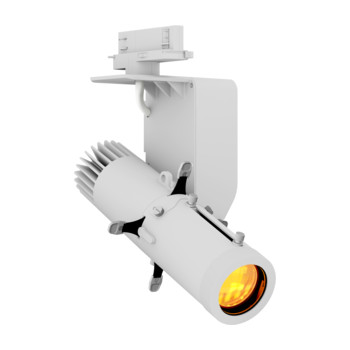 Fuente LED ECL Display Blanco de 40W, RGB (Full color) + blanco con temperatura de color cálida 3.000°K. Rueda de color. Posibilidad de control vía DMX, DALI Tipo 8, RDM, dimerizado por corte de fase (Dimmer externo LE/TE no incluido) y potenciómetro de dimerizado manual. Diseñado para la máxima flexibilidad y versatilidad de hasta 7.000 combinaciones posibles. Ideal en pequeños espacios como Galerías de Arte, Museos, Parques temáticos y allá donde se necesite cambios de color saturados o pasteles así como el control de la temperatura de color desde 3.200°K a 5.600°K de la más alta calidad y desde cualquier tipo de control, incluyendo DMX/ DALI o dimmer externo para adaptarse a intalaciones con carril electrificados regulados por dimmers. Ópticas opcionales NO incluidas de alta calidad Zoom Wash 15°~30°, 25°~50° o de recorte con cuchillas y zoom de 20°~40° o fija de 8º. Alimentación 100~240VAC 50/60Hz por terminales en placa. Opcional un adaptador NAGA para carriles electrificados NO incluido. Sistema de refrigeración pasiva sin ventilación, totalmente silencioso. Consumo máx.35W. IP20. Recubrimiento exterior de aluminio de color Blanco RAL9003. Dimensiones (WxHxD): 148X200x150mm. Peso 1'63 Kg.