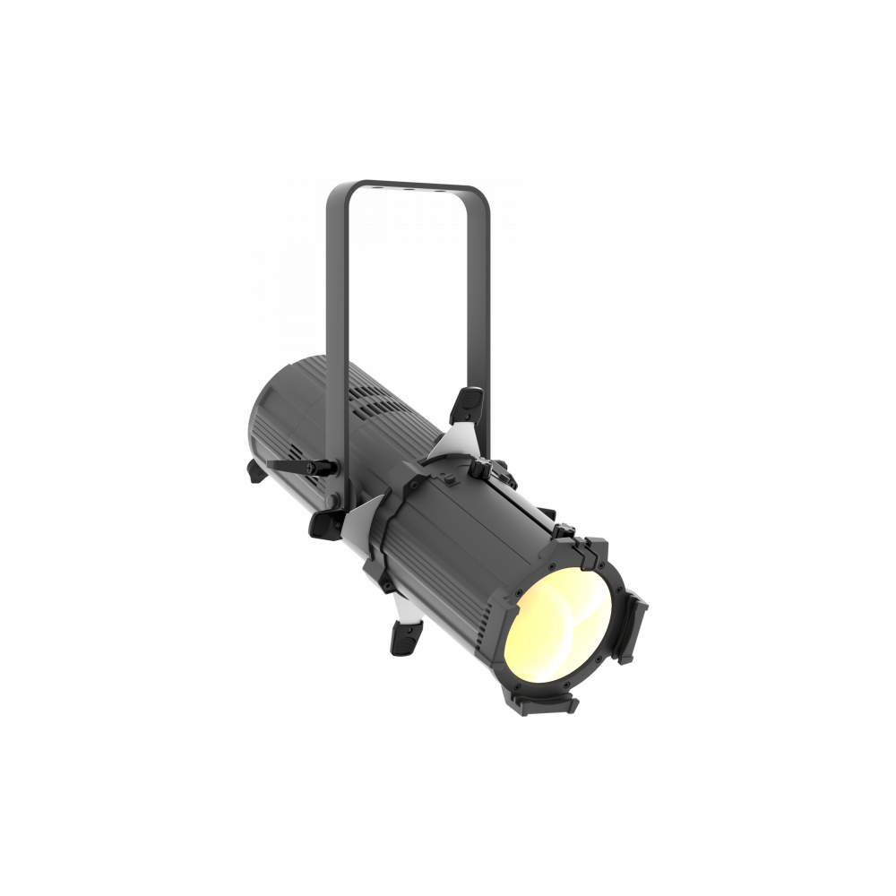 Fuente de Recorte IP65 Led COB de 160W Luz Blanca Cálida (TU) de gran precisión cromática, un CRI >90, TLCI ±91 dependiendo de la óptica, ofrece un Flujo de 5.500 lúmenes. 4.644 lux 15° @5m. Temperatura de color nativa de 3.100°K. Diseñado para cubrir las necesidades de un recorte convencional con las ventajas de la fuente Led y su capacidad de proyectar luz blanca de gran calidad en entornos de clima desfavorables. Es ideal para aplicaciones Broadcast, corporativo y teatro al aire libre. Ópticas zoom opcionales disponibles de 15~30° o 25~50° con ajustes manuales independientes de Zoom y de enfoque. Sistema de 4 cuchillas de recorte en tres planos. Tamaño de los gobos opcionales tamaño M, e66_i45_t1,1mm. Protocolo: DMX512 y RDM por conectores XLR5 pins In/Out. Control 1 o 3 canales. Sistema de refrigeración líquida y ventilador ultrasilencioso. Alimentación 100~240 VAC 50/60 Hz por PowerCON Waterproof In/Out de Seetronic, Consumo máx. 136W. IP65 de protección Waterproof. Color exterior Negro. Dimensiones (WxHxD): 275x440x275 mm. Peso 7'9 Kg.