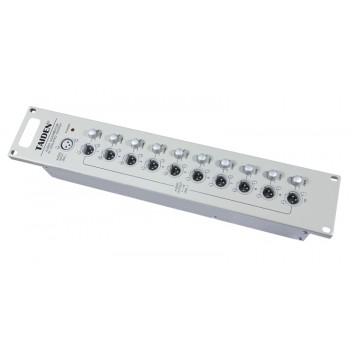 Distribuidor de Prensa 1 entrada 10 salidas aisladas por transformador con ganancia de salida independiente. 2U rack.