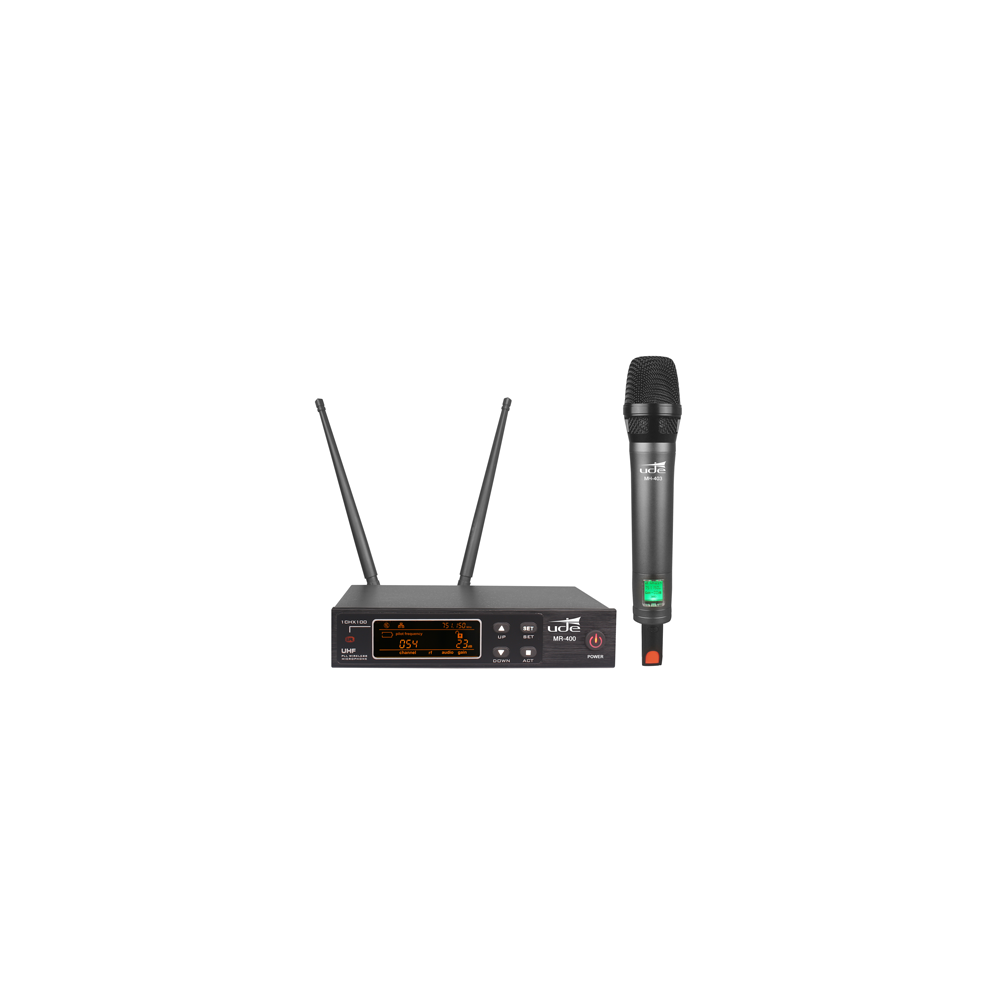 Micrófono con display para confirmación de frecuencia sincronizada.