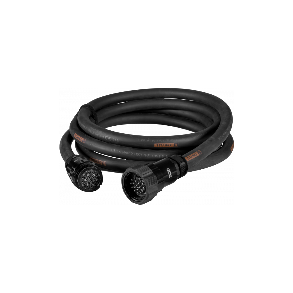 Manguera 40 metros Multipar de 18 hilos de 2'5mm TH071825. Cubierta TITANEX superflexible H07RN de Neopreno. FRNC. Conectores SOCAPEX 19 contactos con aro de fijación Macho-Hembra (9262191MV y 9262191FV. 23A. L40m. Peso 41Kg.