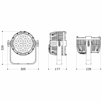 Proyector PAR IP65 MultiLed con 12x9W RGBW, con flujo de 6.700 Lúmenes. 415'4 lux 45° @5m. Vida Led >50.000 h >70%. Diseñado para ser usado tanto en teatro, conciertos e iluminación arquitectural. Mezcla de color aditiva RGBW con Presets de CTO de 3.000°K~10.000°K, Rueda de color Virtual con Presets predefinidos. Ópticas intercambiables de 45° (60° en ¹/10 de Peak Angle) incluidas y posibilidad de usar ópticas de 20° (36 en ¹/10 de Peak Angle) para mayor apertura NO incluidas. Dimmer y Shutter con macros pregrabadas con velocidad ajustable. Protocolo DMX512 por conectores Seetronic XLR5 pins waterproof In/Out. Control 4 / 6 o 11 canales. Sistema de refrigeración Pasiva sin ventiladores, que lo hacen totalmente silencioso. Alimentación 100~240 VAC 50/60 Hz por conector Seetronic PowerCON waterproof In/Out, Consumo 110W. IP65 de protección Waterproof. Dimensiones (WxHxD): 305x326x177 mm, Peso: 6'2 kg.