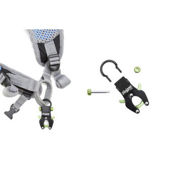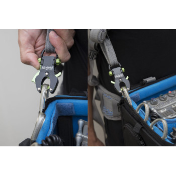 Sujeción de aluminio para bolsas de accesorios, grabadores portátiles y otros equipos para microfonistas. Su sistema de cierre y apertura ultra rápido permite fijar con seguridad pesos de hasta 35Kg. Fabricado en aluminio, color verde. Funciona en combinación con Viviana Screw.