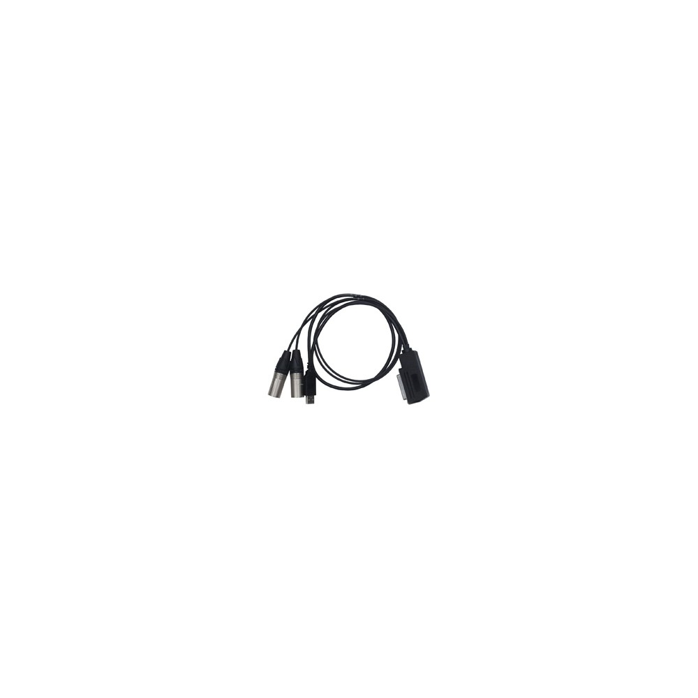 Cable con conector SubD25 terminado en 2xXLR3-M y 1xUSB.
