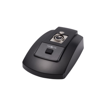 Base para micrófono con conexión Dante. Alimentación PoE. Conector para micro XLR3M. Pulsador configurable PTT o Latch a través de conmutador. Ganancia seleccionable +20dB / +30dB / +40dB / +50dB por conmutador. Filtro Pasa altos 80Hz seleccionable. Dimensiones (AlxAnXPr) 45 x 90 x 131 mm. Peso 0,6Kg.