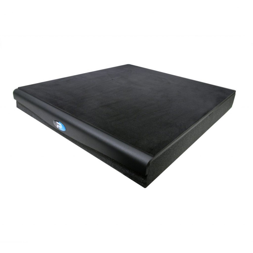 Soporte de monitor de estudio para respuesta mas precisa, formado por distintas capas de espuma acústica, acero y neopreno. Tamaño base 582 x 506 mm. (An x Prof). para monitores en vertical. Sin ángulo de inclinación. Maxima carga: 65 Kg.