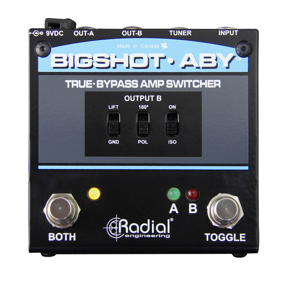 El BigShot ABY™ es un conmutador ABY compacto con bypass real que permite alternar entre dos amplificadores o reproducir con ambos simultáneamente, eliminando el zumbido de los bucles de masa. DI Pasiva, no requiere alimentación.