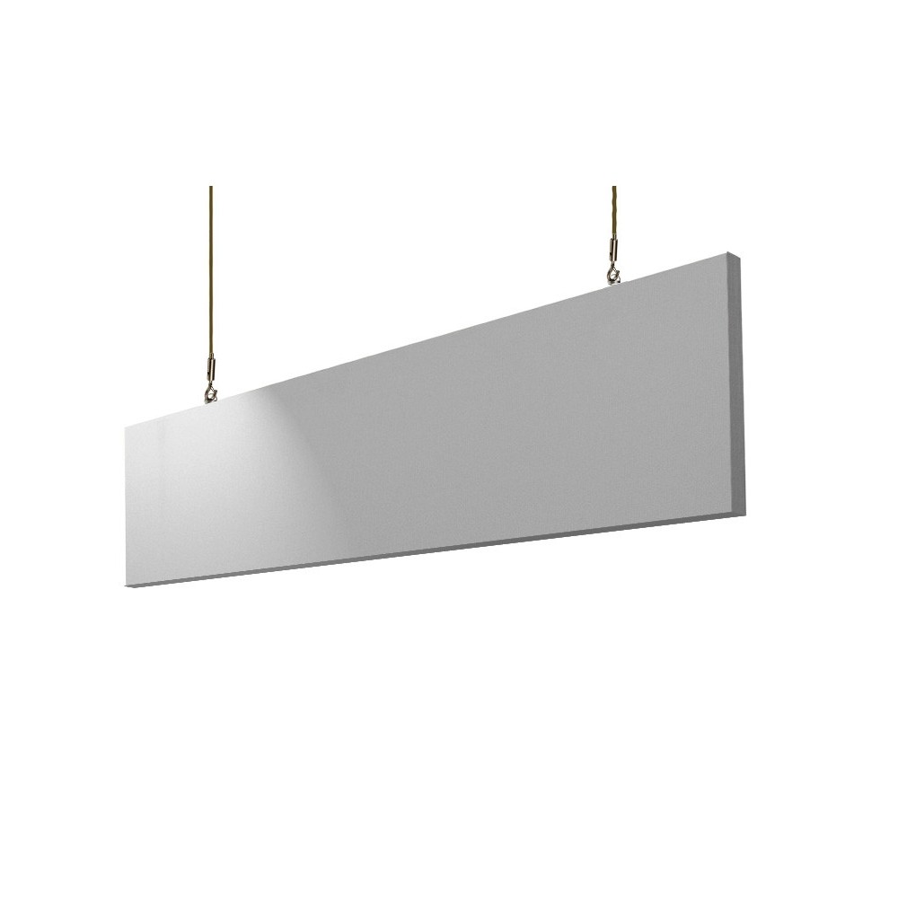 Pack de 2 paneles acústicos de fibra de vidrio, recubierto con una elegante tela de color GRIS por todas las caras. Incluye enganches Corkscrew para instalación suspendidos del techo. Tamaño 305 x 1.220 mm. Grueso 51 mm. Precio pack 2 unidades.