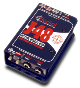 Para sinais de baixo nível com baixos passivos, uma guitarra acústica com pickups magnéticos ou um piano Rhodes, uma caixa de injecção directa activa como a Radial J48 ™ será uma opção melhor. O circuito activo manejará facilmente os transitórios que podem alcançar 9 volts sem asfixia. Devido ao circuito activo e a uma maior impedância de entrada de 220.000 Ohm, a DI activa não descarregará o pick up, resultando num som mais solido.