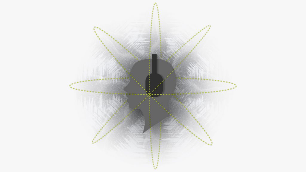 Cuando el sonido proviene de delante de una persona, la influencia es simétrica, lo que significa que el sonido es el mismo en ambos oídos. Sin embargo, tan pronto como el sonido se mueve hacia uno de los lados, el sonido se vuelve diferente a medida que llega a cada oído. El nivel, la respuesta de frecuencia y el tiempo de llegada difieren. El lado de la cabeza más cercano a la fuente de sonido proporciona una reflexión que provoca una acumulación de presión en el rango de frecuencias medias. En el lado opuesto de la cabeza, se produce un efecto de sombreado en el mismo rango de frecuencia.